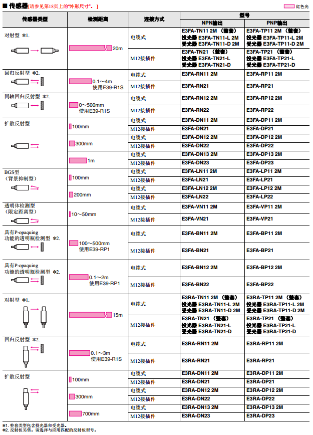 歐姆龍傳感器E3FA/RA系列|歐姆龍光電開關傳感器E3FA/RA系列