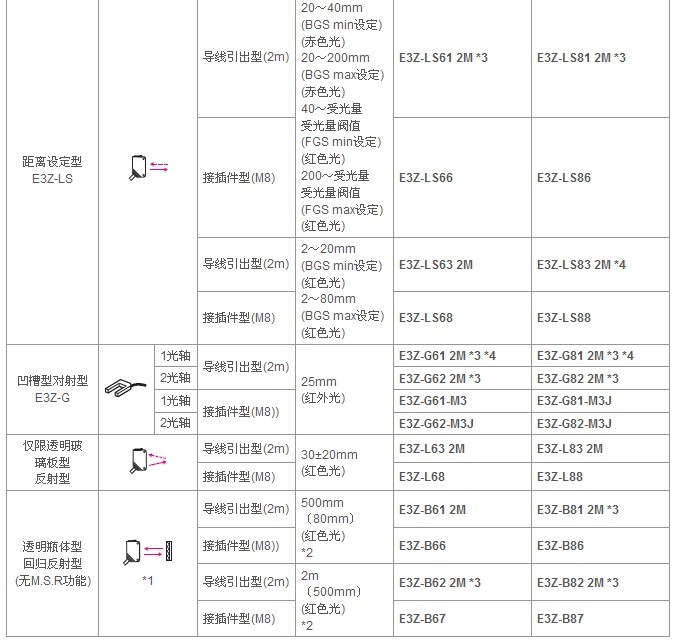 歐姆龍光電傳感器(光電開關(guān))E3Z系列